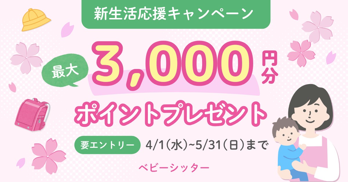 キャンペーン対象サポーターは、ベビーシッターデビューから3ヶ月以内のサポーターです。