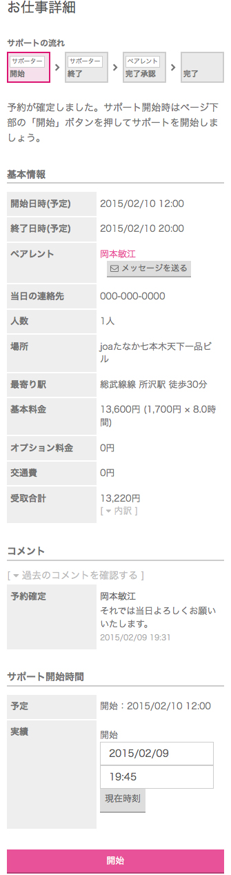 延長の申し入れがあった際には、延長料金分の時給が20%加算される事をユーザーへ予めお伝え頂くとスムーズな完了報告承認に繋がります。